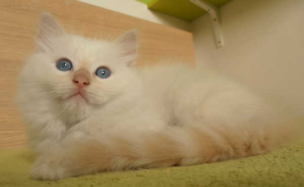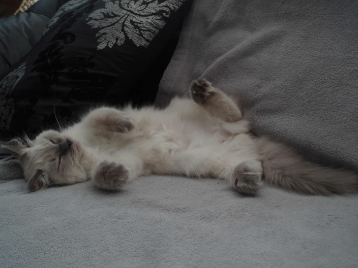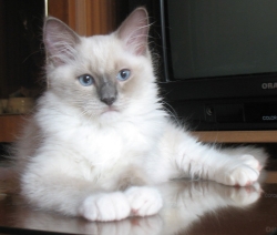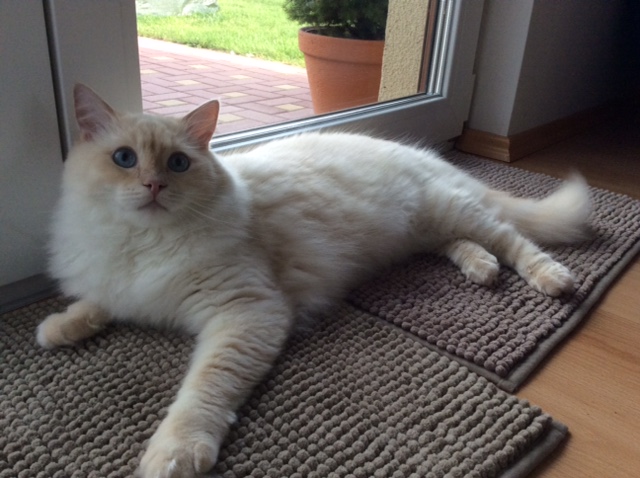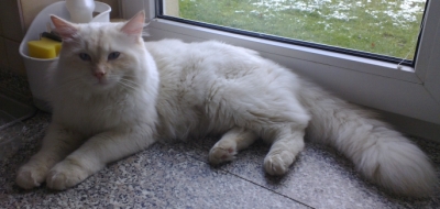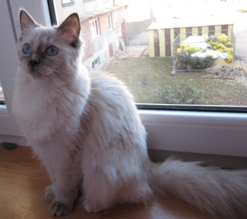 Amálka už je v novém domově, byla pordána jako mazlíček a své "povolání" vykonává jako správný ragdoll:-)