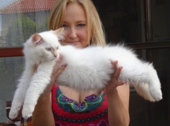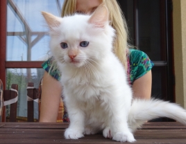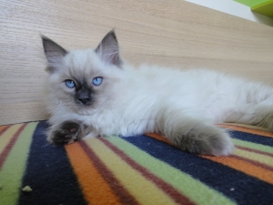 Z emailů paní Třískové: Amálka je úžasné zlatíčko, je mazlivá a hravá, chodí za námi a úžasně přede, zrovna mi vrní na břiše. Má úžasné oči, bude opravdku veliká, už přerostla jednu z mých koček a to jí ještě není ani rok. Jsem z ní naprosto nadšená. Je to miláček naší rodiny.